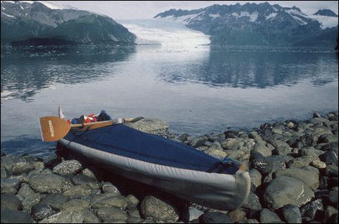 Jonathan's folding single Klepper kayak is ready to head over to the glacier.
