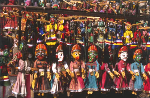 The marrionettes represent kings and princes, as well as some gods such as Shiva the Destroyer.
